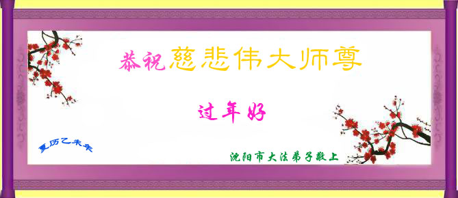 我们全家人恭祝师尊乙未年新年快乐!我们一定听师父的话,好好学法精進,救度更多的众生,不辜负师父的慈悲苦度。 辽宁省沈阳大法弟子祝师父新年好!