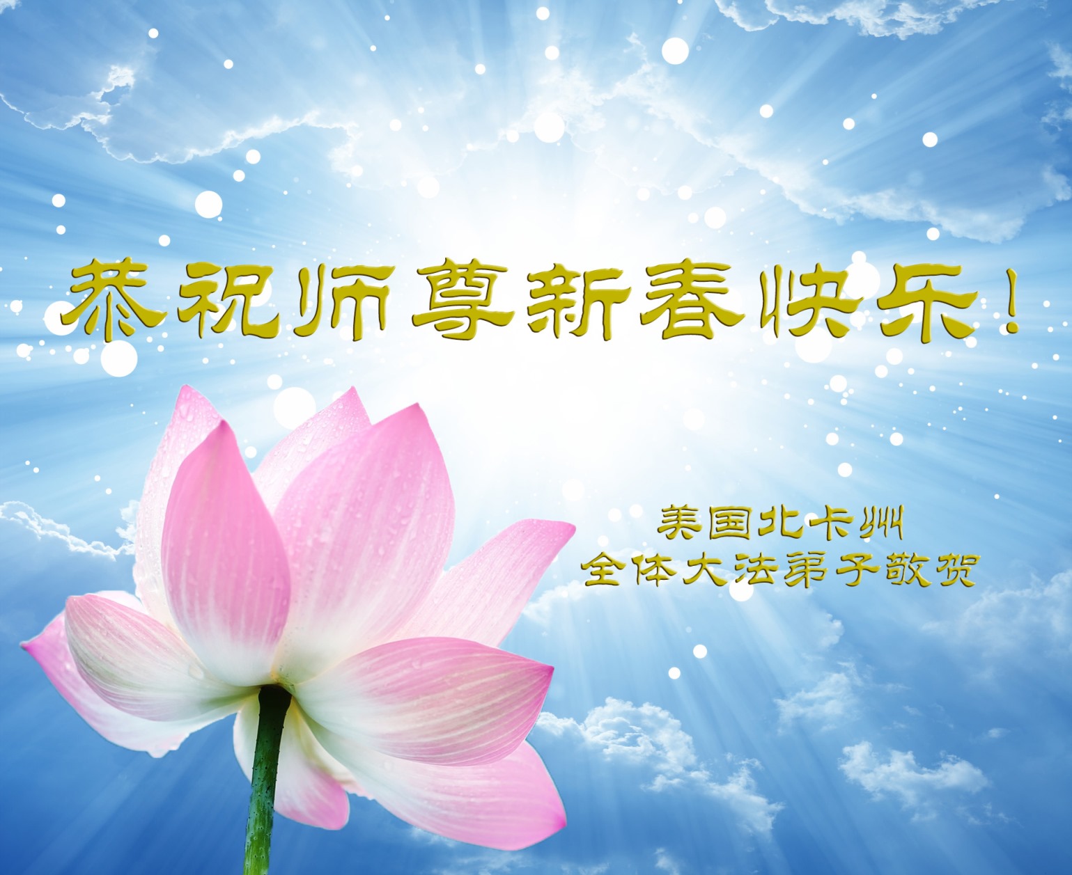 师尊过年好! 美国北卡州全体大法弟子恭祝慈悲伟大的师父新春快乐!