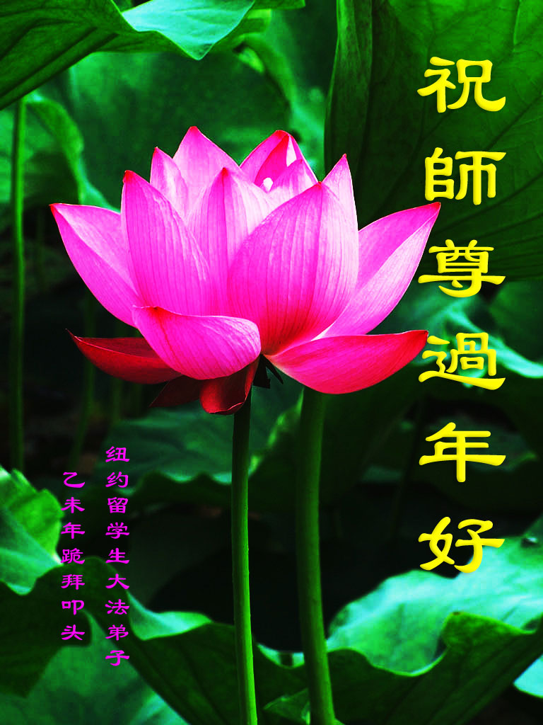 弟子跪拜师尊:恭祝师尊过年好! 想念师尊 无以言表感恩师尊 弟子坠入红尘中 朦胧中只知为来找师父 师尊给弟子打上真 善 忍烙印 给弟子一次次洗净 无比幸福无比感恩 在新的一年里牢记师尊教诲 时时归正妄念减 铭记修炼如初 同化大法乘法船 纽约大法弟子敬上合十 纽约新!唐!人:“今日大纽约”组全体大法弟子恭祝慈悲伟大的师尊过年好!