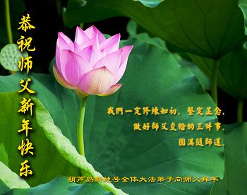 在过去十几年的正法修炼路上,我们众弟子在师尊的慈悲呵护下,沐浴着师父的浩荡佛恩,在摔摔打打中不断走向理性成熟,在大法中不断得到升华。在今后的岁月中,我们会谨遵师父的教诲,做好正法时期大法弟子的三件事,坚定的信师信法,坚定的以法为师,时时按大法要求来归正自己的一思一念,学法明理,实实在在地学好法修好自己,实实在在地发好正念,实实在在地做好讲真相救众生证实法的事,向神看齐,真修实修,做个成熟的大法弟子,在神的道路上勇猛精進。 辽宁省葫芦岛市西部大法弟子 辽宁葫芦岛市大法弟子恭祝师父新年快乐!