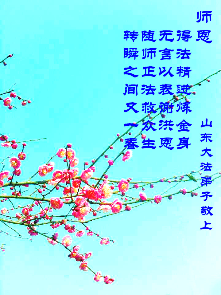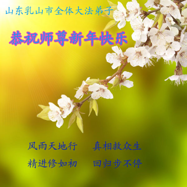 余后的时间里弟子会愈加精進,共同提高,救度更多众生。 师恩 得法精進炼金身 无以言表谢洪恩 随师正法救众生 转瞬之间又一春 山东省威海市乳山市全体大法弟子恭祝慈悲伟大的师尊新年快乐!