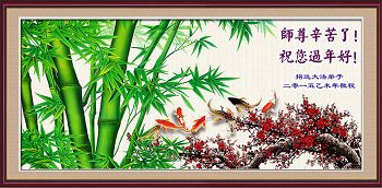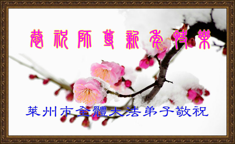 我们在新的一年里请师尊放心,用心学法,事事对照,使全身每个细胞装進大法,一举一动,一言一行都符合大法,成为合格的大法弟子,继续做好三件事,多救人,向师父交一个圆满的答卷,弟子盼望早日与师尊团聚。 叩拜师尊。 山东梁山大法弟子恭祝慈悲伟大的师父新年快乐!