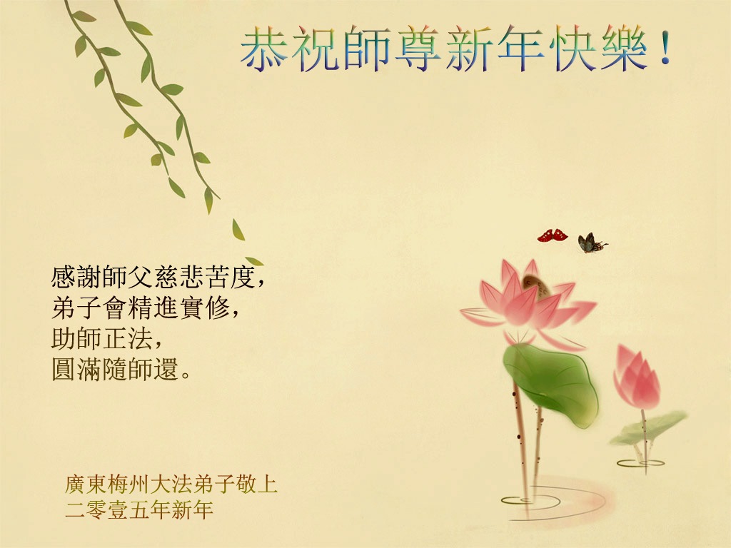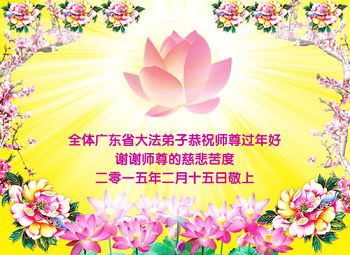 【明慧网二零一五年二月十九日】 广东省梅州大法弟子恭祝师父新年快乐!
