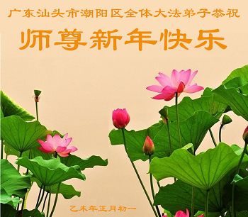 。 广东省汕头市大法弟子给慈悲伟大的师父拜年!
