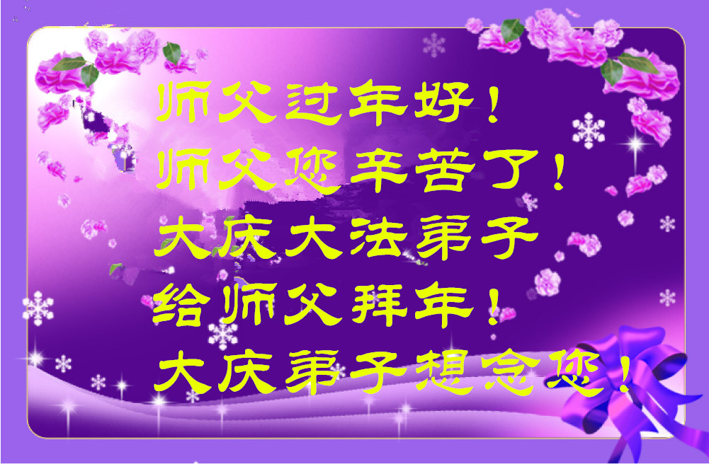 【明慧网二零一五年二月二十日】 黑龙江省大庆大法弟子给师父拜年!师父您辛苦了!