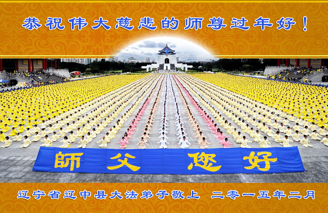 2015年2月15日 辽宁省沈阳市辽中县的全体大法弟子给师尊拜年:师尊新年好!