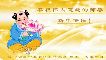 二零一五年新年来临之际,我们辽中县的全体大法弟子在此遥寄对师尊的思念同时给师尊拜年:师尊新年好,祝师尊新年快乐! 请师尊放心,在新的一年里,我们全体辽中大法弟子会更加精進做好三件事,不辜负师尊的慈悲苦度,不辜负众生的期盼。同时我们要彻底清除邪*党-文化在我们身上的留毒。显现出大法弟子的真正慈悲和风采。 二零一五年二月十五日 辽宁省沈阳一大法弟子夫妻恭祝师父新年好!