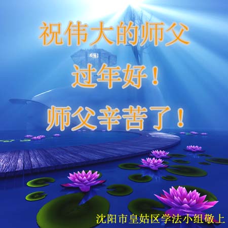 谢谢师尊的慈悲救度,在弟子沉沦之际从没放弃弟子,在这里也谢谢同修的耐心帮助。 恭祝慈悲伟大的师父新年快乐!!! 辽中县从新走回修炼的弟子叩拜 二零一五年二月十六日 辽宁省沈阳市大法弟子给师父拜年:师父过年好!师父辛苦了!