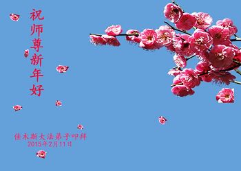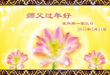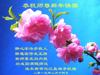 师父您好! 新年将至,弟子们深知自己的使命与责任,多学法,在法上提高,做好三件,多救人。圆容整体,做一个合格的弟子,跟随师父回家。 佳木斯长安立交桥全体老年大法弟子合十跪拜 二零一五年二日十五日 黑龙江佳木斯抚远大法弟子一家三口祝师父新年快乐!