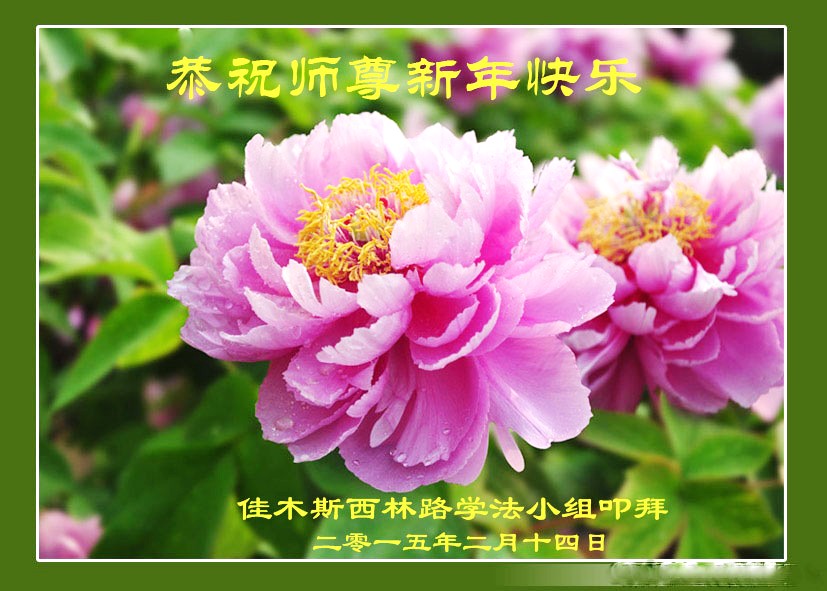 弟子们想念恩师,谢谢师父的慈悲救度之恩!我们大法弟子唯有修好自己,努力正念多救人,做好三件事,助师正法,圆满功成!佳木斯佳南大法弟子 2015年2月10日 黑龙江省佳木斯大法弟子祝师父新年好!