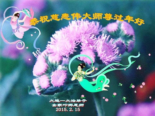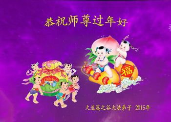我们给师父拜年!恭祝师尊过年好!在新的一年里,我们会继续坚持做好三件事,在救度世人中不断提高,兑现誓约,随师回家。 辽宁省大连大法弟子向慈悲最伟大的师尊恭祝新年快乐!