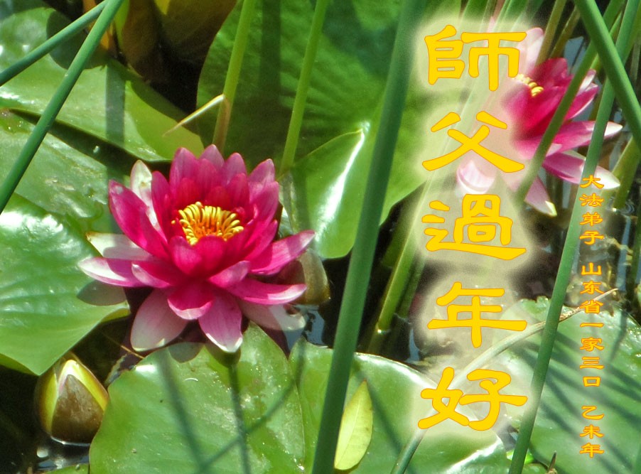 在2015新年到来之际,山东招远市大法弟子借明慧一角向慈悲伟大的师父拜年了,同时也向海外的同修们拜年,你们辛苦了。 山东威海大法弟子恭祝师尊新年快乐!