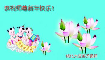 恭祝师尊新年快乐! 修炼大法这么多年,磕磕绊绊的每次过关都是在师父的呵护下走过来的,每次的生命都是师父给的,今后我们要多学法,按照大法严格要求自己,修正自己,信师信法,坚定的走师父安排的路,弟子盼望与师父早日团员。 黑龙江省加格达奇二位老年大法弟子叩拜 黑龙江省鹤岗大法弟子恭祝师尊过年好!