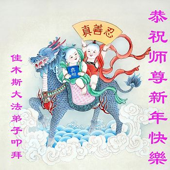 我和儿子(同修)给师父拜年了!叩拜师父,感谢师父慈悲救度! 黑龙江省佳木斯圣缘学法小组大法弟子恭祝师尊新年好!