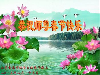 二零一五年新年来临之际,山东青岛市机关大法弟子恭祝师尊节日快乐!新的一年里我们会利用机关工作环境向有缘人讲清真相,倍加珍惜师尊给予的救度众生的神圣机缘,把大法的美好展现给世人,勇猛精進做好三件事,谨记师尊的教诲一定修好自己,不辜负众生的期盼,不辜负师尊的慈悲苦度。 大陆交通系统大法弟子恭贺伟大慈悲的师尊过年好!