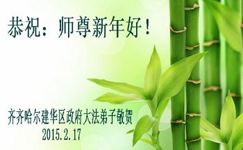 【明慧网二零一五年二月二十一日】 黑龙江省齐齐哈尔市建华区政府大法弟子恭祝师父新年好!