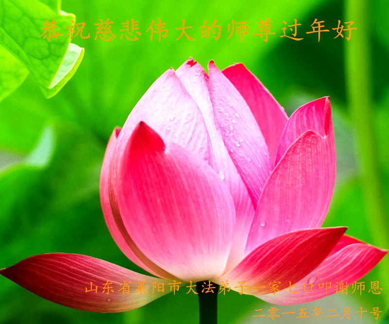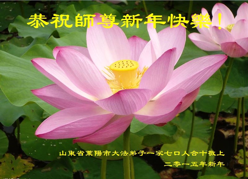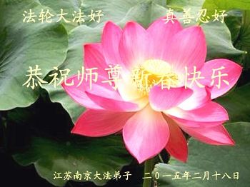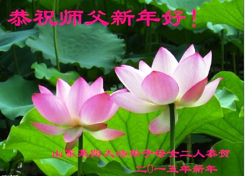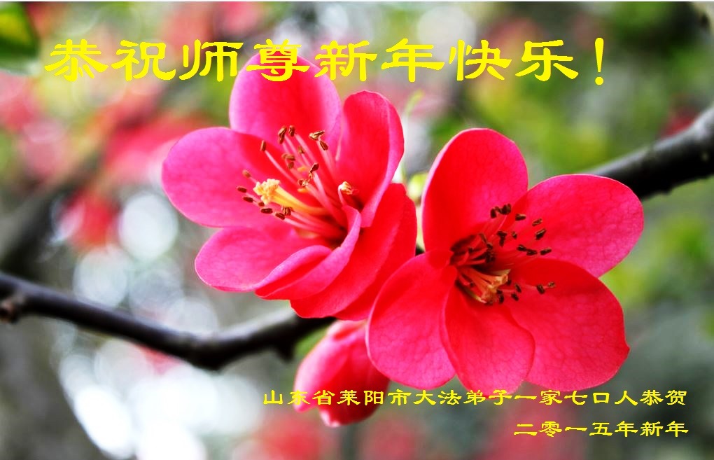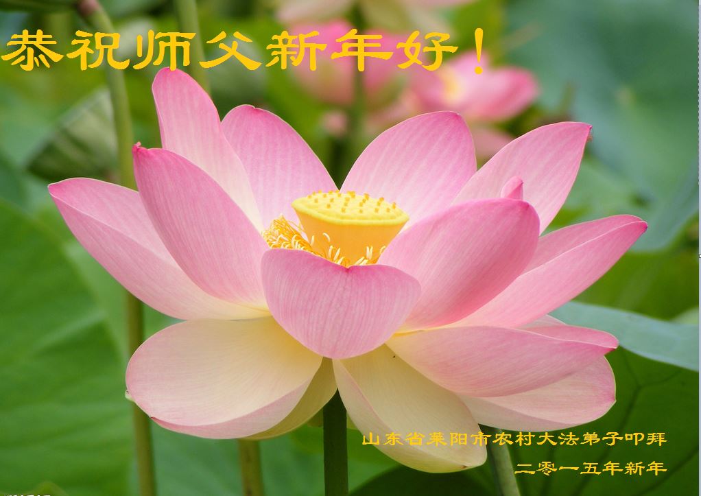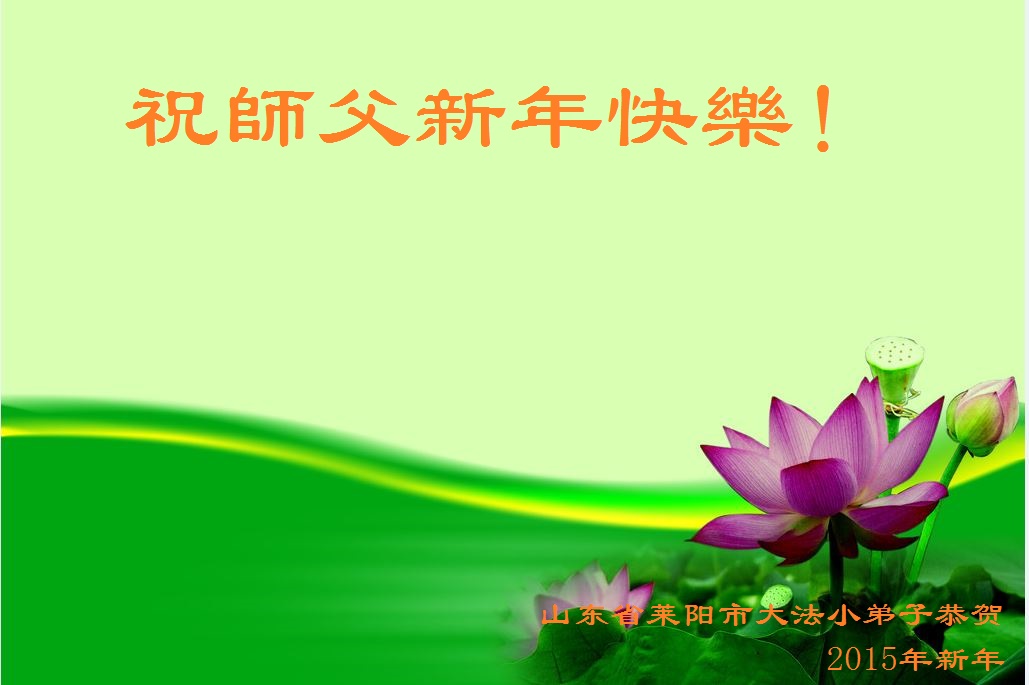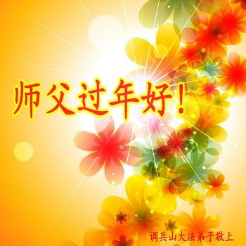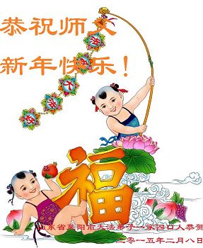 伟大的师尊过年好!在2015年新年到来之际,我代表全县大法弟子、全家弟子给师尊拜年!也受委托为在甘肃兰州女子监狱被迫害的大法弟子给师父拜年!弟子们也尽全力助师正法,救度众生,不辱使命! 大陆大法弟子慧真恭祝师尊新年好!