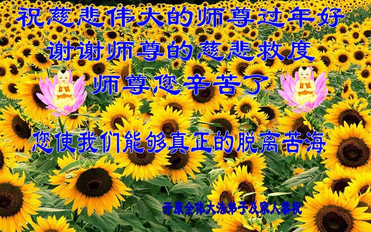 转眼又一年,在最后的日子里,弟子唯有多学法、学好法,尽最大努力向内找,去人心,多救人,不辜负师父的慈悲苦度。弟子叩谢浩荡师恩! 开原全体大法弟子及家人祝师尊过年好!