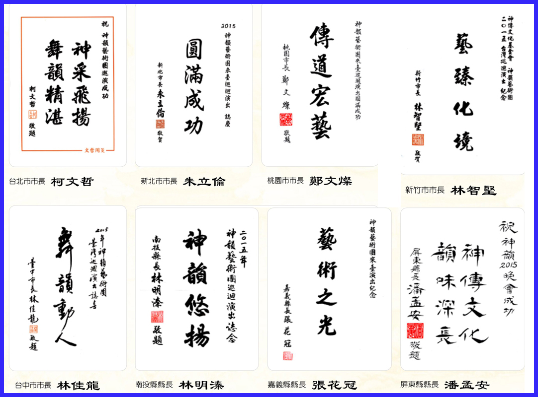 图4:台湾六大直辖市市长,及各级地方首长都发文齐贺,欢迎神韵再次访台。 |