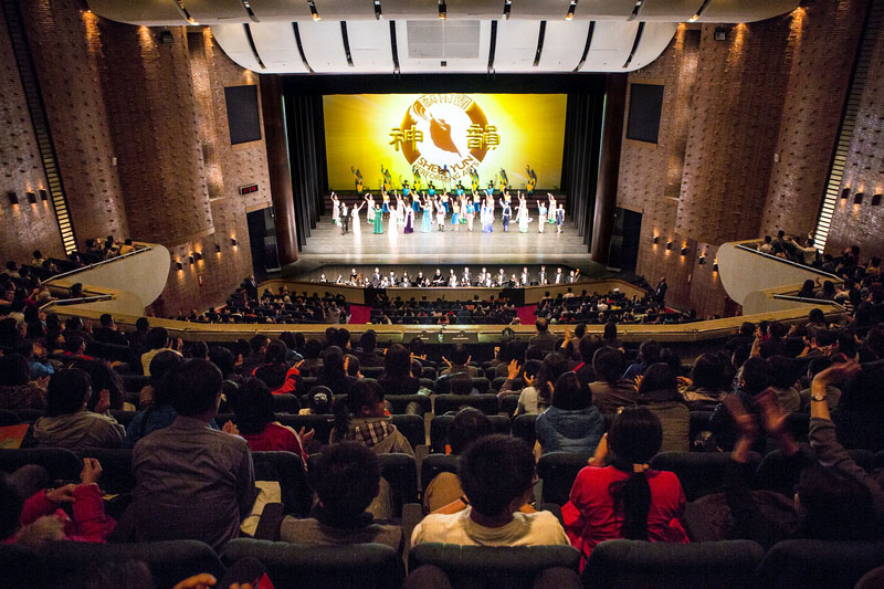 | 【明慧网二零一五年四月十七日】(明慧记者沉容、黄宇生综合报导)神韵纽约艺术团于二零一五年四月三日至八日,在台北国父纪念馆缔造连续八场票房销售百分百的佳绩,再次创下台北艺文界的票房纪录。 紧接着,四月十一日、十二日在嘉义县表演艺术中心进行三场演出,届时,神韵艺术团在台湾成功上演四十场演出,并达到“场场爆满,一票难求”。其中嘉义场次的门票,更早在开演前一个多月便已悉数抢购售罄。此外,几乎每场神韵晚会开演前,尽管票房早已提前售罄,但仍然有诸多慕名粉丝赶到剧院现场,苦苦求票,只为入场一圆观赏“世界第一秀”的心愿。神韵晚会再次蝉联台湾艺文界的年度票房冠军。  图1:四月十二日,神韵纽约艺术团结束嘉义场民雄演艺厅第三场演出,也为在台湾巡回演出划下完美的句点,图为演员谢幕。 |