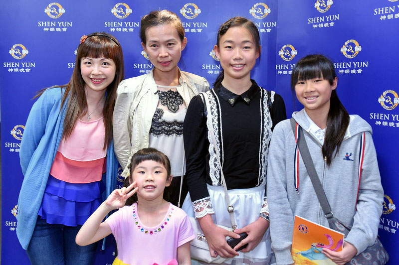 当代国宝级国画家、国立师范大学美术学系名誉教授郑善禧观看了四月八日下午的神韵演出,他赞赏神韵演出规模恢弘:“从前帝王的宫廷都没有这么好的表演可看,就连以前皇帝也没有这种场面!” 著名水墨画家郑善禧,是“文人水墨白话化”的重要代表,他笑着表示,自己看神韵是来学习的。“我的专长只是画画,看色彩,看演员的排列,看舞台的平衡,几个人站这边,几个人站那边,前后的呼应,我是看形象的形式。我感觉中国的艺术是多方面的,音响、灯光,跟天幕配合起来,都不简单。” 谈到中西乐器合璧的神韵艺术团乐团,郑善禧称自己不懂音乐,但是他感悟艺术有其一以贯之之道,“中西乐器合璧,声音是音调,画画是色调,旋律跟节奏,一切都有一以贯之之道,绘画、舞台的表演、音乐的配合,以及光线、灯光,道是相贯连的,我都在学习,以后要应用到绘画中。” 舞蹈团团长:神韵感人 源于演员内在修为  图7:淡水艺术舞蹈团团长刘纹君(左二)及其学生观赏神韵演出。 |
