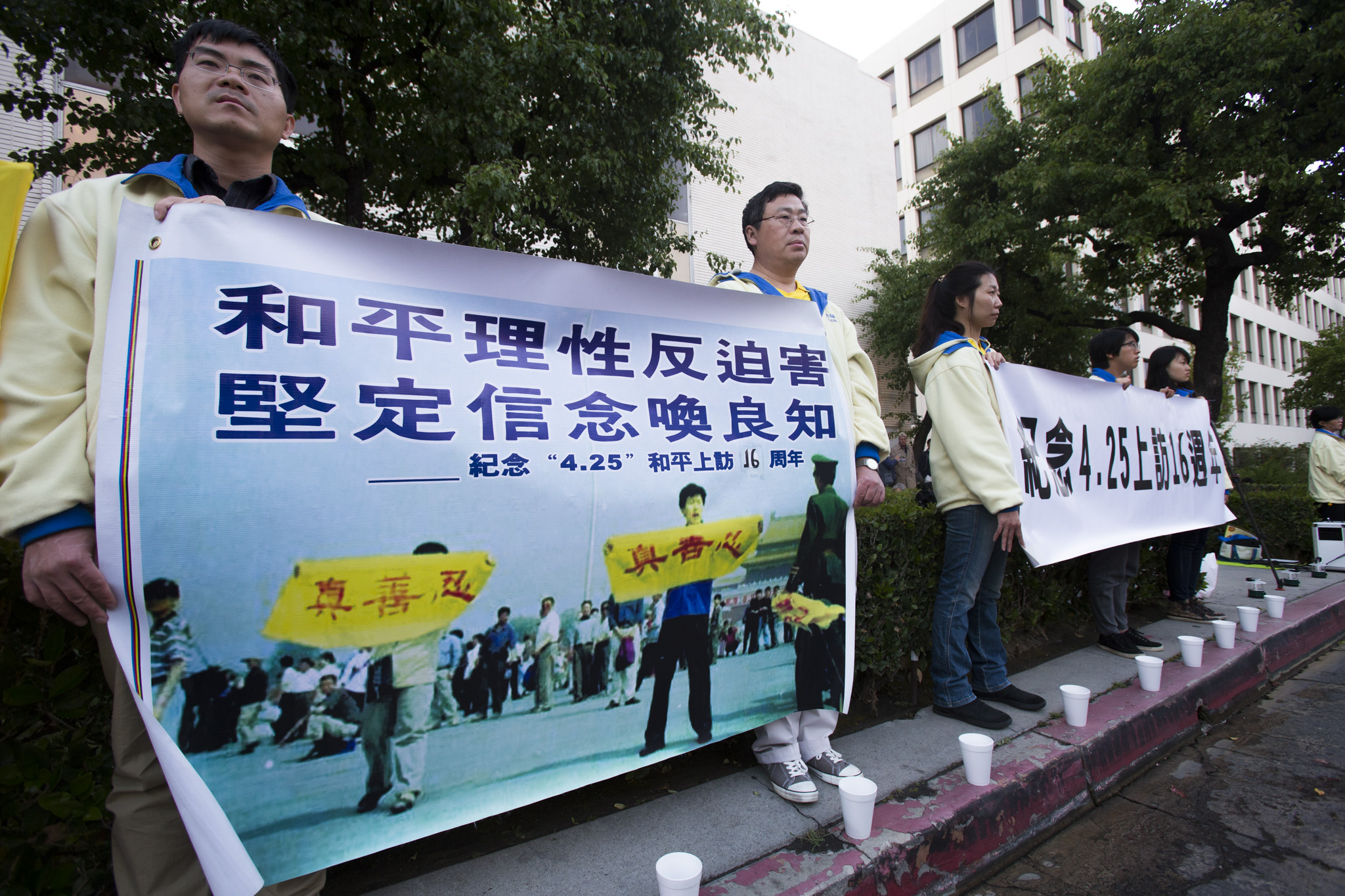 加州大学洛杉矶分校(UCLA)教授吴英年表示:“四•二五的直接起因是天津警察非法抓捕殴打四十五名法轮功学员,各地学员才自发到国务院信访办和平上访。而在那之前,中共宣传部已经禁止了法轮功畅销书籍的出版。时任中共政法委书记的罗干曾下令“先定罪后调查”,在全国各地罗织罪证加罪法轮功。”因此他说:“不是法轮功上访导致迫害,而是中共的本性导致迫害发生:即使没有四•二五,以中共假、恶、暴的本性也必然会对信仰真、善、忍的老百姓发动迫害。” 亲历者回忆四•二五和平上访 参加当晚集会的有不少四•二五亲历者。一九九九年还在天津上高中的王宇(化名)回忆说,中共科痞何祚庥在天津教育学院《青少年科技博览》杂志发表文章,捏造事实陷害法轮功,暗喻法轮功会像义和团一样亡国,引发许多法轮功学员到天津教育局去反映真实情况,教育局却叫来警察抓人。之后,法轮功学员被告知要解决问题只能去北京。就这样,四月二十五日王宇和母亲登上了去北京的火车。 到达北京上访现场,王宇回忆:“人很多,我觉得不止一万人。有人在炼功、有人在看书。没人组织,但秩序很好,没有影响其他人。”“我和妈妈在府右街站了一天,知道有学员代表在和政府谈。得知天津学员被释放了,我们才走。” 王宇等天津学员被天津市府派来的大巴接回,“车开到一个地方,他们把我们的名字都记了下来。”从此王宇和母亲上了中共迫害法轮功的黑名单。 回想四•二五上访,给他感触最深的是祥和的气氛:“当时很激动,能参与这么大型的和平上访,见证大法的威力,非常荣幸。无人组织,学员们都非常自觉,没给政府添麻烦,也没影响社会秩序。这是平常人难以做到的。” 然而法轮功学员的和平理性与祥和并没有阻止中共于当年七月二十日开始的非法迫害。吴英年指出,十六年以来,数以十万计的法轮功学员被非法劳教、判刑,已经确认的就有约四千法轮功学员惨遭杀害。而由于中共极力掩盖罪行,这一数字还只是冰山一角。 揭露中共活摘法轮功学员暴行 记录片《活摘》获大奖 中共迫害法轮功,最残忍邪恶的罪行莫过于活摘法轮功学员器官。 “反强摘器官医生协会”(DAFOH,Doctors Against Forced Organ Harvesting)美西发言人丹纳•邱吉尔医生说,中共活摘法轮功学员器官已超过十四年。在没有器官捐献机制、没有捐献器官传统的中国,每年却能做大约一万个器官移植手术,他说:“这无疑是种族灭绝罪行。这一罪行持续的太久了。” 但邱吉尔医生表示,停止迫害的希望在增长。今年,若干揭露中共活摘罪行的记录片在主流媒体播出,包括一部名叫《活摘》(又名《大卫战红魔》)(Davids & Goliath)的记录片。该片于四月二十三日荣获第七十四届美国广播电视文化成就奖(Peabody Award,又名皮博迪奖)。皮博迪被誉为广播电视界的普利策新闻奖,是全球广播电视界历史最悠久、最权威的奖项之一。 《大卫战红魔》将于四月二十八日在南加“新港国际电影节”(Newport Beach Film Festival)上映。 “三:退.”让中国人摆脱中共洗脑获得精神自救 吴英年说,过去的十六年,法轮功学员秉承和平理性的精神,向不明真相的警察慈悲劝诫,表现出的大善大忍,历史上少见,和中共的腐败与残忍形成显明对照。然而由于中共在历次政治运动中打压中国人的良知、用利益收买社会精英阶层,使中国人患上了类似斯德哥尔摩综合症。 而《·九·评*共产党》的发表,法轮功学员的劝三:退.正是为了中国人摆脱中共的邪恶洗脑、从怕心中走出来,获得精神自救。他强调:法轮功学员不以政治为目的,不为政权、没有政治诉求。他们不仅是为自己、也是为所有中国人争取信仰言论自由,为所有人争取知情权和美好的未来。 洛杉矶全球.退:党!服务中心义工代表李海伦说:“一个星期以前的四月十八日,我们刚举行了声援两亿中国民众声明退出曾经加入的中共党团队集会。类似的声援活动仍然在全球此起彼落、相继展开。一个越来越多世人觉醒,越来越多中国人唾弃中共:退!党!、退*团-、退*队-,救己救国的高潮正在到来。”