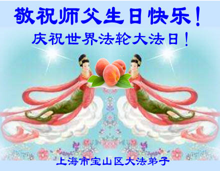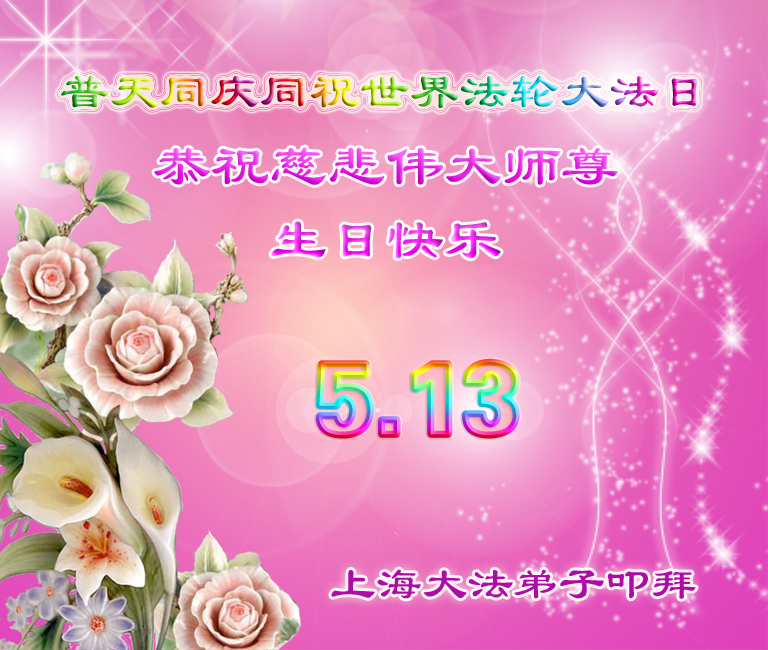 在修炼的道路上我们走了很多弯路,多亏师尊的慈悲呵护才能走到如今,我们今后一定会更加珍惜修炼机缘,尽力跟上正法進程,弥补遗憾! 上海大法弟子恭贺师尊华诞暨世界法轮大法日!