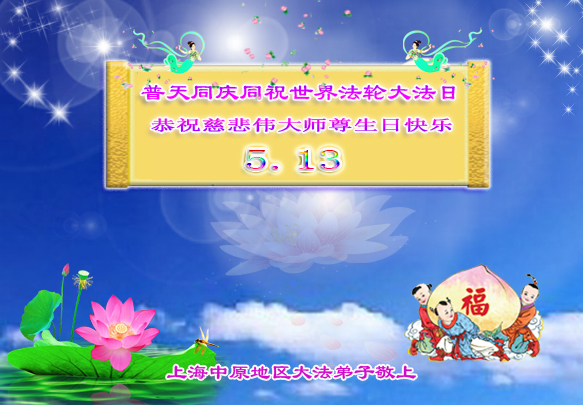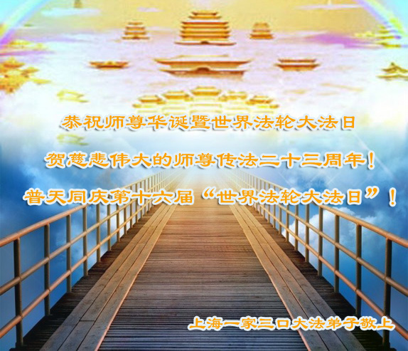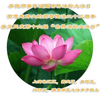 贺慈悲伟大的师尊传法二十三周年!普天同庆第十六届世界法轮大法日! 上海全体大法弟子恭贺慈悲伟大的师尊生日快乐!