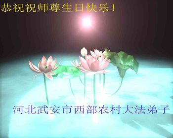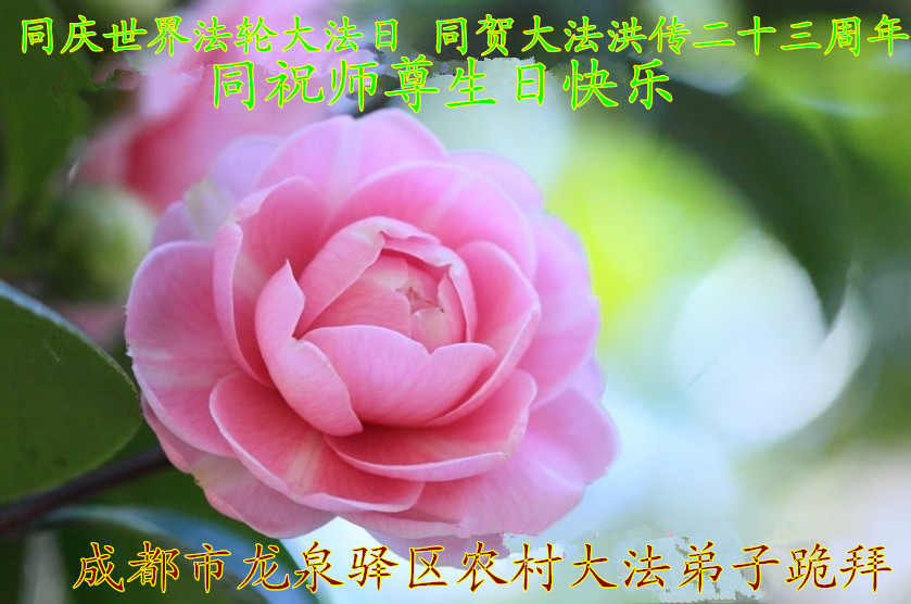 一束鲜花赠师尊 略表弟子方寸心 师父慈悲救众生 众生罪业师父当 弟子感恩语难表 只有助师转法轮 普天同庆大法日 恭祝师父生日好 河北省保定市望都县农村全体大法弟子恭祝世界法轮大法日暨师父生日快乐!