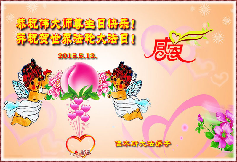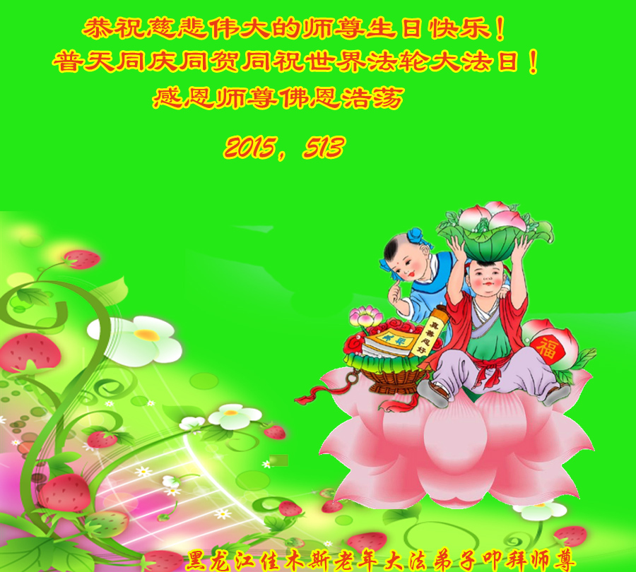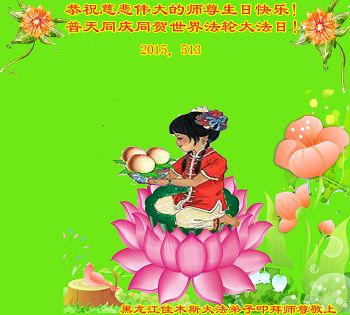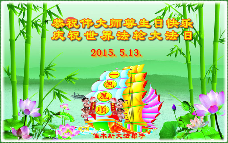 【明慧网二零一五年五月十日】 黑龙江省佳木斯大法弟子恭祝师尊生日快乐!