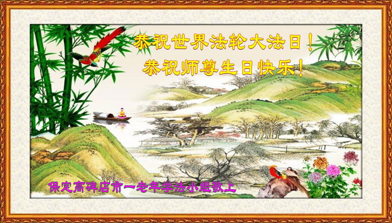 河北省保定市高碑店市一老年学法小组大法弟子恭祝世界法轮大法日!恭祝师尊生日快乐!