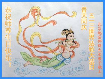 感谢师尊从一九九二年五月十三日开始传法、正法,慈悲救度众生、救度弟子!在这风雨二十三年的历程,千言万语无法表达自己的心声,只有感恩!只有感谢!只有信师信法做好三件事,多救人、多救人,完成弟子的使命,同师尊回家。叩拜!叩拜!再叩拜! 北京六位大法弟子叩拜恭祝慈悲伟大的师尊生日快乐!普天同庆世界法轮大法日!大法洪传二十三周年!
