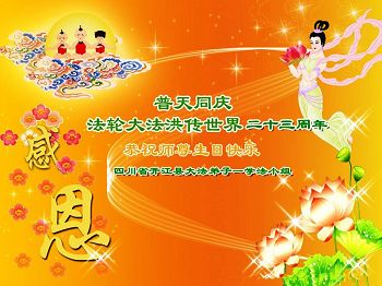 四川德阳城南一学法小组大法弟子恭祝师尊华诞!同贺世界法轮大法日!