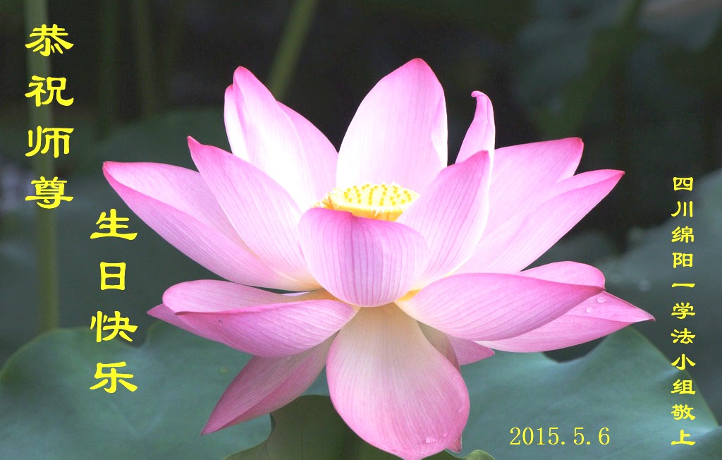 在世界法轮大法日来临之际,全体弟子向师尊问好!师尊您辛苦了! 四川绵阳一学法小组大法弟子恭祝师尊生日快乐!