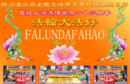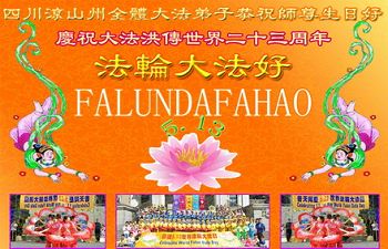 四川凉山州彝族地区全体大法弟子恭祝慈悲伟大的师尊生日快乐!庆祝世界法轮大法日暨大法洪传二十三周年!