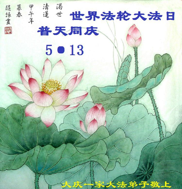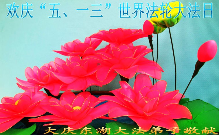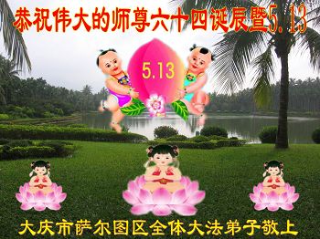 黑龙江省大庆一家大法弟子恭庆5.13世界法轮大法日!