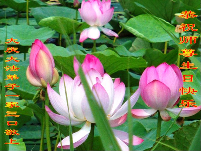 黑龙江省大庆大法弟子一家三口恭祝师尊生日快乐!