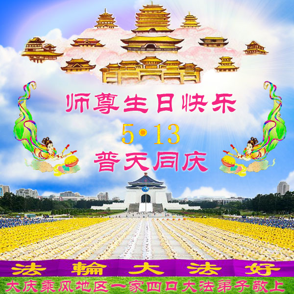 黑龙江省大庆乘风地区大法弟子恭贺师尊生日快乐!恭贺5.13世界法轮大法日!