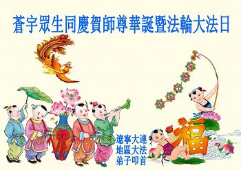 辽宁省大连市三个学法小组全体大法弟子恭祝慈悲伟大的师尊生日快乐!恭贺法轮大法洪传二十三周年!