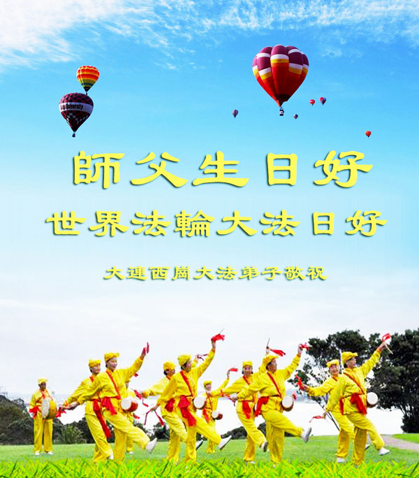 辽宁省大连大法弟子恭贺法轮大法洪传世界二十三周年!