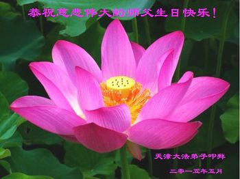 【明慧网二零一五年五月十日】 天津大法弟子恭祝师尊生日快乐!并贺世界法轮大法日