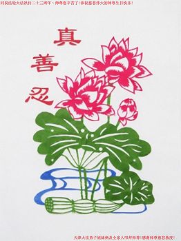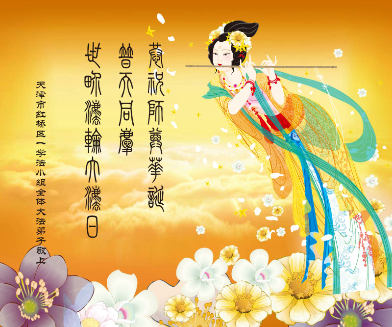 杭州一名大法弟子与天津一名大法弟子恭祝师尊华诞!与遍布世界各地的大法弟子共同庆祝法轮大法日!弟子要努力精進,修好自己,突破怕心、为私等障碍,多救度世人,跟随师父回家! 天津市红桥区一学法小组大法弟子恭祝伟大的师尊生日快乐!普天同庆世界法轮大法日!