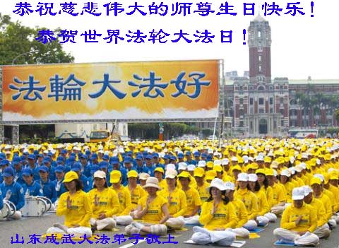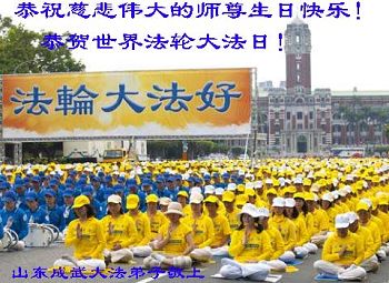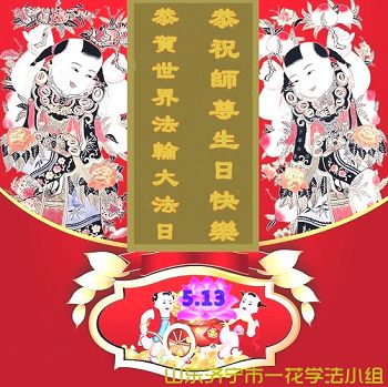 山东淄博全体大法弟子恭贺世界法轮大法日暨师父华诞!恭贺大法洪传二十三周年!