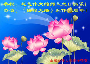 山东泰安一学法小组大法弟子恭祝慈悲伟大的师父生日快乐!