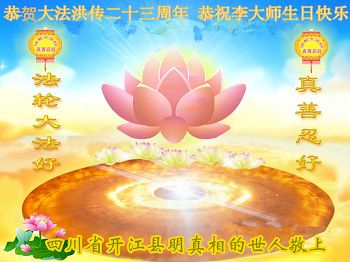 明真相的军队转业干部恭贺李大师华诞暨世界法轮大法日!