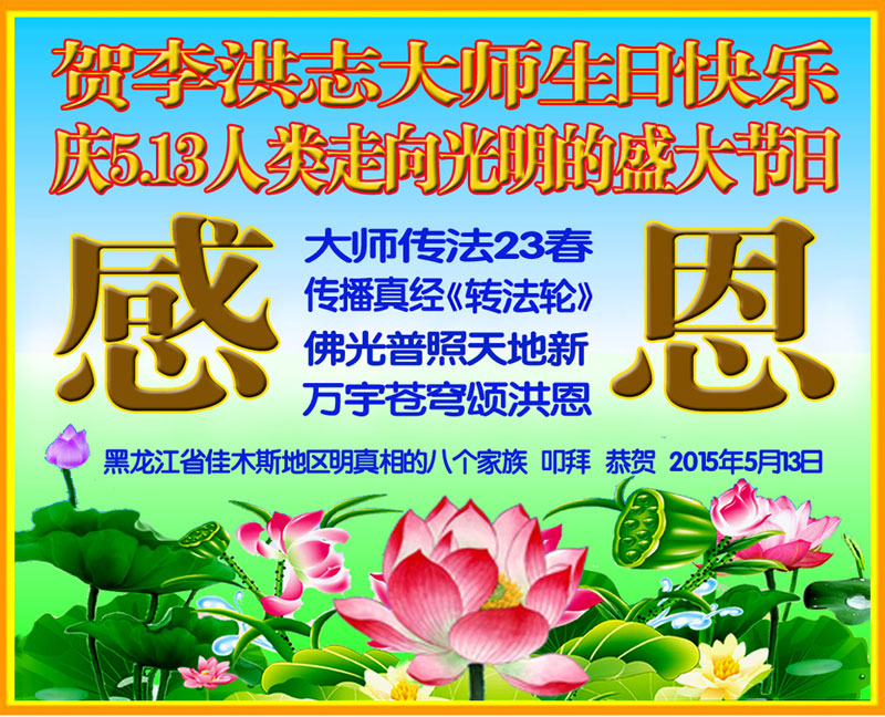 黑龙江省佳木斯地区大法弟子全家及明真相的亲属恭贺师尊生日快乐!普天同庆世界法轮大法日!