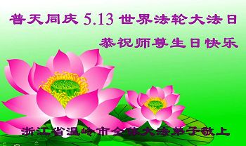 浙江金华大法弟子叩拜 浙江省杭州市余杭区大法弟子恭祝师尊生日快乐!恭贺5.13世界法轮大法日!
