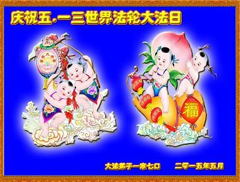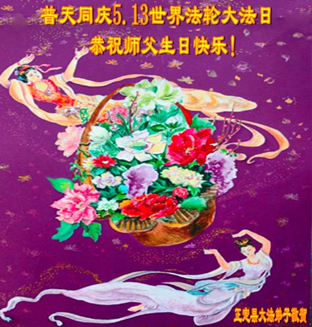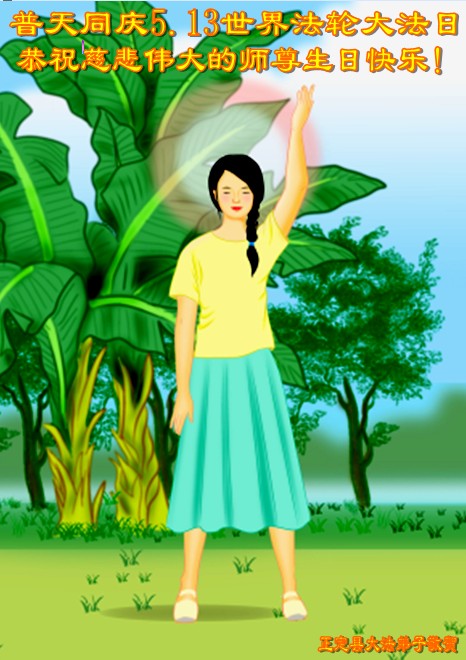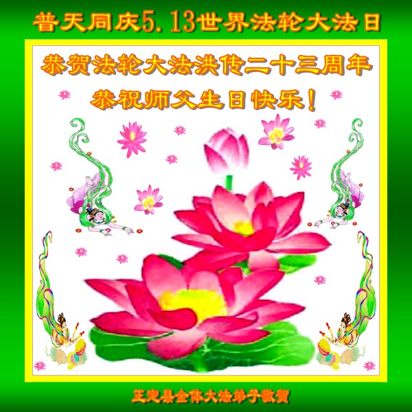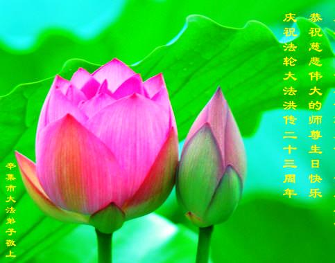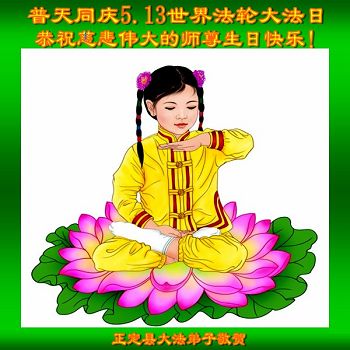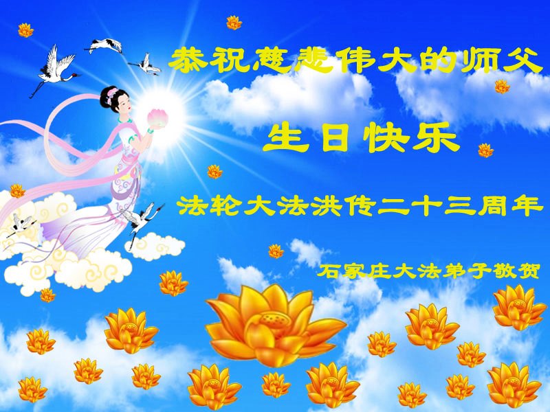 河北省石家庄大法弟子恭祝慈悲伟大的师父生日快乐!恭贺大法洪传二十三周年暨五一三法轮大法日!