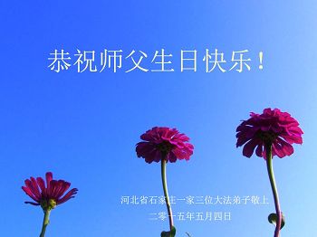 河北省石家庄一家三位大法弟子恭祝师父生日快乐!