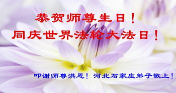 河北石家庄大法弟子恭贺师尊生日快乐!同庆世界法轮大法日!